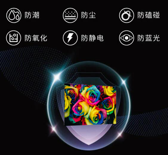 超強(qiáng)九重防護(hù),真正全密封的結(jié)構(gòu)。表面光滑無(wú)裸露元件,達(dá)到IP65 的完全防護(hù)能力,像素點(diǎn)表面光滑而堅(jiān)硬,具有防磕、防撞擊、抗壓、防水、防潮、防塵、防油污、防氧化、防靜電等性能,高穩(wěn)定易維護(hù),日常清潔維護(hù)可直接用濕布擦除表面污漬。