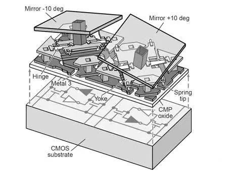 為什么HEP800機(jī)型的對比度能有這么大幅度的提升呢?首先HEP封裝DMD微鏡的偏轉(zhuǎn)角度加大,導(dǎo)致反射的OFF光更加遠(yuǎn)離投影機(jī)鏡頭,從而大幅減少了OFF光經(jīng)光機(jī)吸光部件反射的雜散光通過鏡頭溢出的比例,也就大幅減少了暗場亮度。