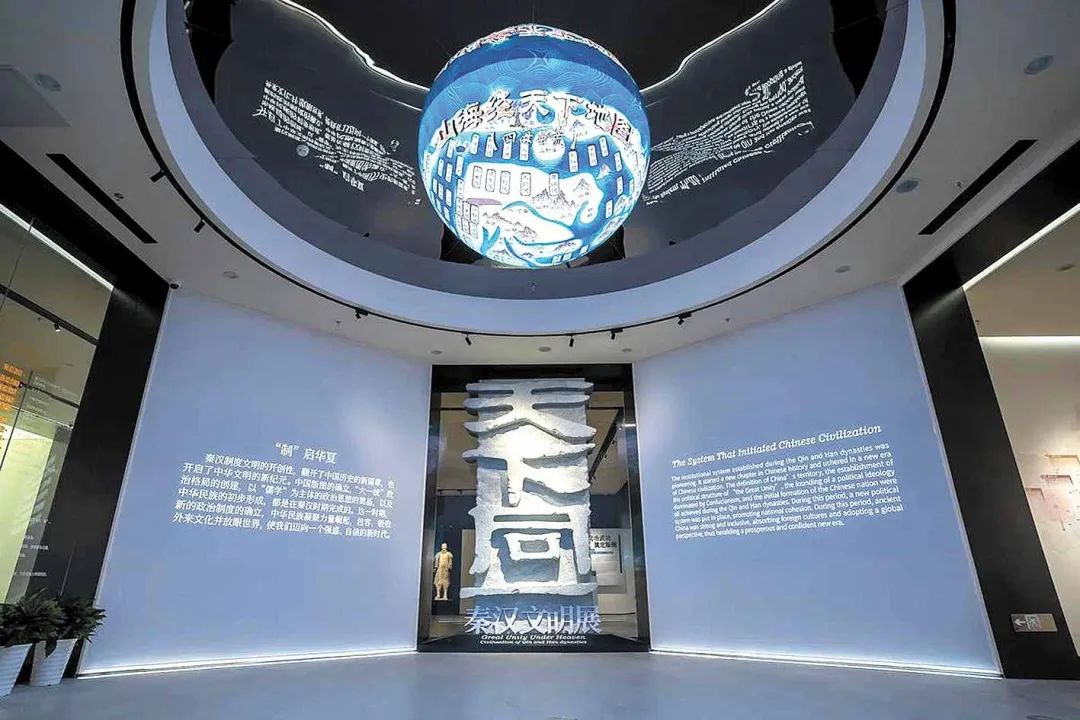 譬如序廳的球屏,就將秦漢版圖的變化置于世界格局之中,透過LED創(chuàng)意顯示裝置與史實資料,生動詮釋秦漢文明之于中文明發(fā)展的奠基性作用。