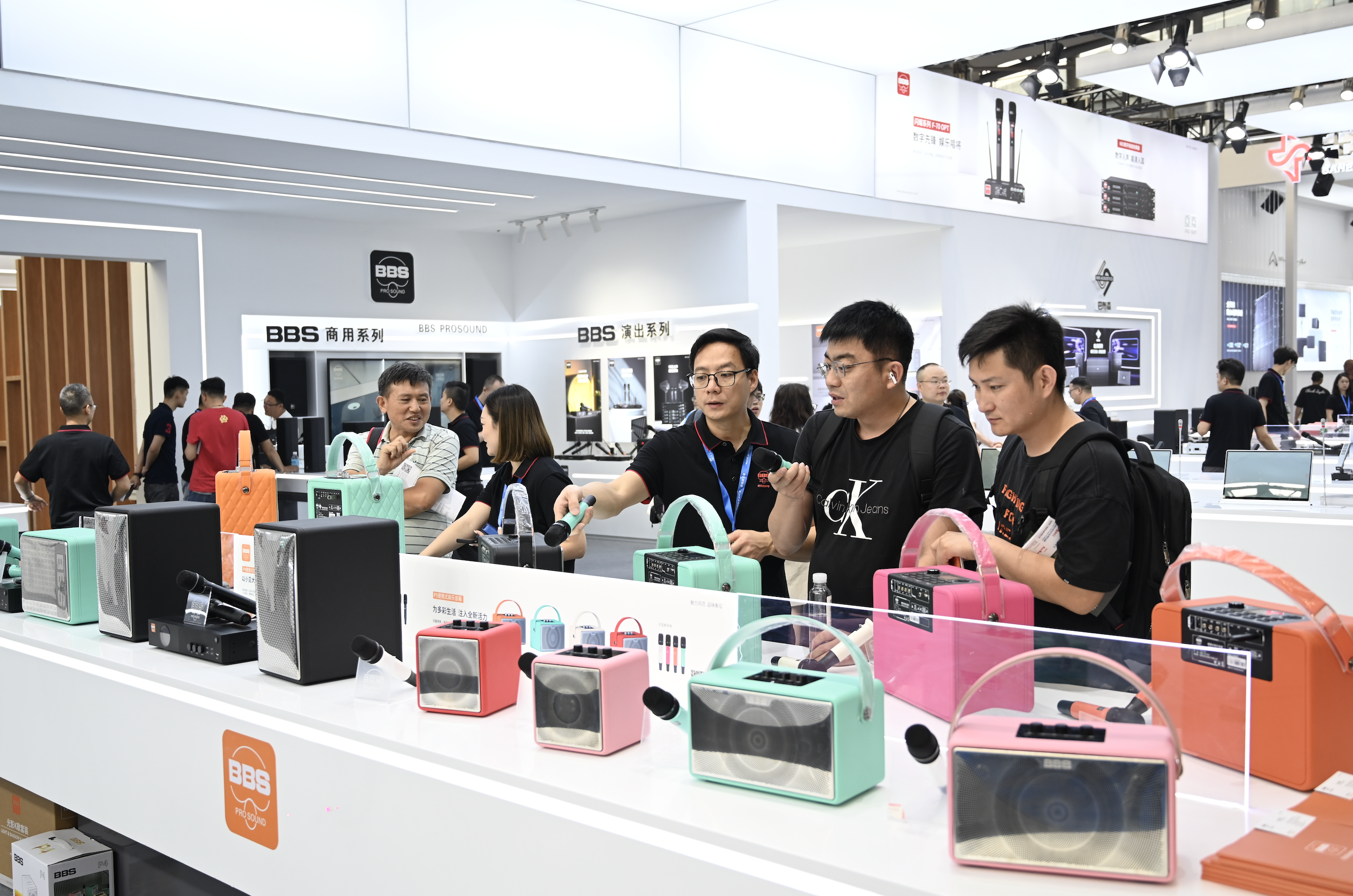 BBS品牌今年廣展帶來了一系列的創(chuàng)新產(chǎn)品,娛樂系統(tǒng)的OPT數(shù)字化升級(jí)產(chǎn)品,通過引入先進(jìn)的技術(shù)和創(chuàng)新的設(shè)計(jì)理念,為用戶提供了更加出色的音頻體驗(yàn);民品系統(tǒng)的便攜式娛樂音箱,時(shí)尚的色彩和設(shè)計(jì),專業(yè)的功能和音質(zhì),智能的操控和調(diào)節(jié)為好兄弟聲學(xué)展位增添一抹不一樣的色彩,小巧輕便、無線連接、高品質(zhì)音效、耐用設(shè)計(jì)和多功能、多場(chǎng)景使用等特點(diǎn)吸引眾多客商體驗(yàn);商用系統(tǒng)的無紙化會(huì)議系統(tǒng),無線會(huì)議系統(tǒng),無線演出系統(tǒng)等產(chǎn)品,不僅功能強(qiáng)大、特色鮮明,而且應(yīng)用場(chǎng)景廣泛,能夠滿足不同行業(yè)的需求;教育系統(tǒng)展出的E-BOX是一款集無線話筒模塊、無線音箱模塊、音頻前級(jí)、音頻中控等N合一終端,為教室等教育場(chǎng)景提供非凡聲音性能和便捷操控體驗(yàn)。