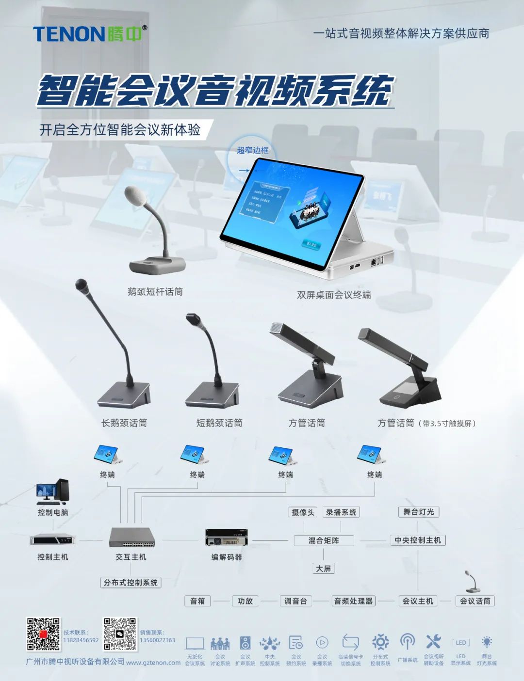 除終端和話筒幾款產(chǎn)品外,騰中的產(chǎn)品鏈涵蓋以下幾大系統(tǒng):大屏顯示系統(tǒng)、無(wú)紙化會(huì)議系統(tǒng)、會(huì)議討論系統(tǒng)、擴(kuò)聲系統(tǒng)、中央控制系統(tǒng)、高清信號(hào)切換系統(tǒng)、分布式可視化系統(tǒng)、舞臺(tái)燈光系統(tǒng)、會(huì)議錄播系統(tǒng)以及會(huì)議輔助系統(tǒng)(升降器、吊架、多媒體信息盒)等。