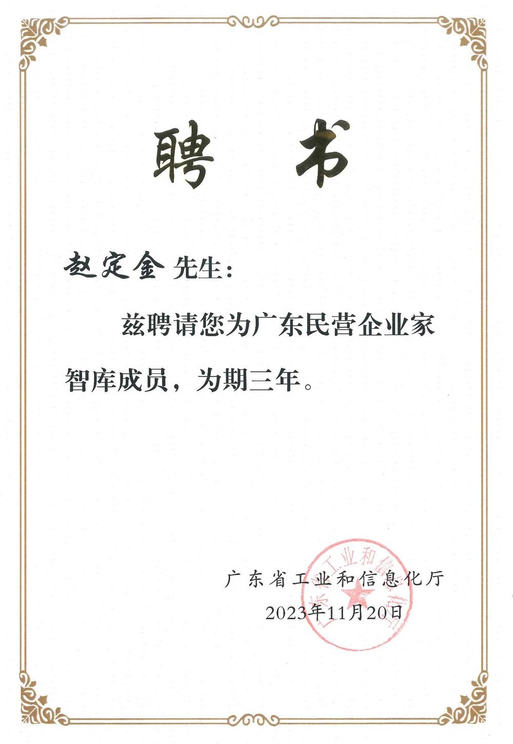 為進(jìn)一步提高民營經(jīng)濟(jì)發(fā)展工作的科學(xué)化、規(guī)范化水平,充分發(fā)揮廣東民營企業(yè)家智庫在決策咨詢中的重要作用,助力全省民營經(jīng)濟(jì)高質(zhì)量發(fā)展,廣東省工業(yè)和信息化廳發(fā)布了廣東民營企業(yè)家智庫成員(第二批)名單。廣東保倫電子股份有限公司總裁趙定金成功入選廣東民營企業(yè)家智庫成員。