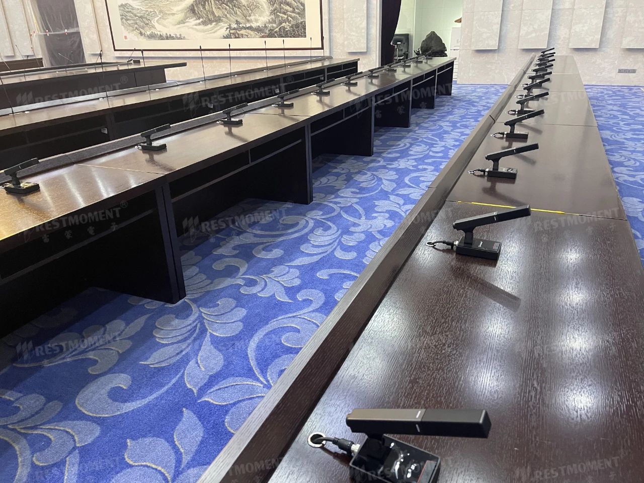 雷蒙電子為寧夏回族自治區(qū)政法委會議室裝備電容方桿系列,無線系列會議系統(tǒng)。