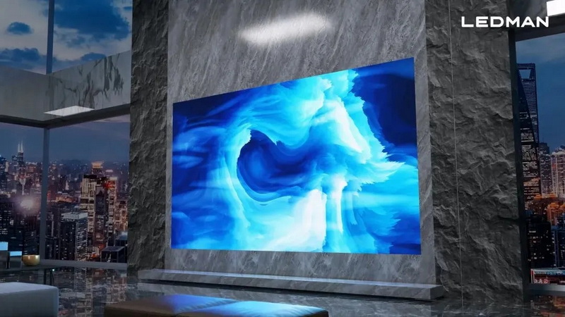 由于PM驅(qū)動玻璃基顯示面板在成本和性能方面的突出優(yōu)勢,雷曼光電已開始探索將其應(yīng)用到會議、教育、家庭巨幕等商用與消費(fèi)領(lǐng)域場景。在家庭市場,雷曼光電率先推出了220英寸玻璃基Micro LED 4K家庭巨幕顯示墻。