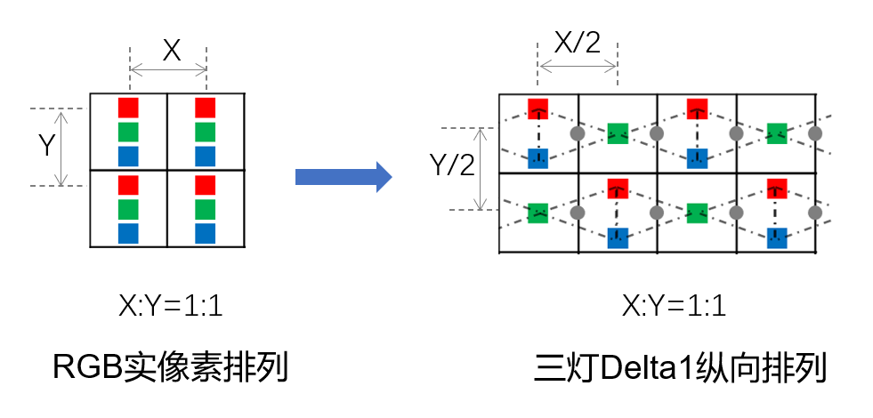 2、三燈Delta1縱向動態(tài)子像素渲染技術(shù)原理