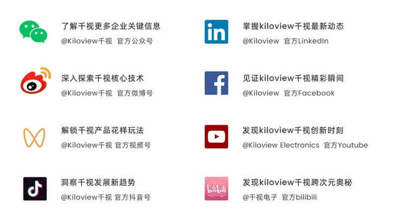 因?yàn)閷I(yè)和專注,經(jīng)過數(shù)年的積累和發(fā)展,公司研發(fā)的系列視頻編碼器、視頻解碼器、視頻轉(zhuǎn)換器產(chǎn)品品質(zhì)一流、在業(yè)內(nèi)最具性價(jià)比,廣泛應(yīng)用于國內(nèi)外廣播電視、直播、教育教學(xué)、醫(yī)療影像、流媒體與IPTV、游戲與互動(dòng)娛樂、視頻會(huì)議等眾多領(lǐng)域。公司用一流的產(chǎn)品、技術(shù)和服務(wù),成功為湖南衛(wèi)視、中國移動(dòng)、中國電信、微信(搖電視)、迅雷直播等客戶和項(xiàng)目提供產(chǎn)品和解決方案。在英國、美國、韓國、日本等國家,客戶成功采用KILOVIEW產(chǎn)品構(gòu)建了娛樂直播、賽事直播、游戲直播、專業(yè)場(chǎng)館監(jiān)控、在線展示等豐富的媒體在線直播解決方案。