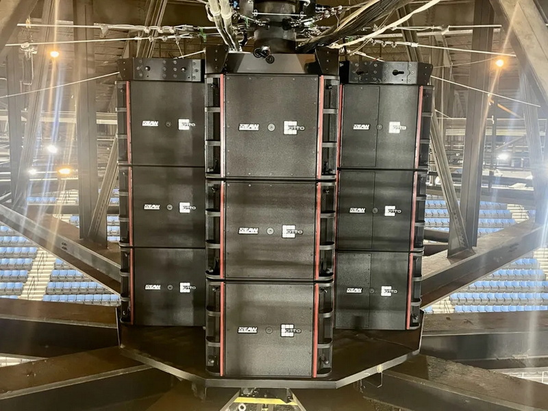 在經(jīng)過深入研究后,馮·布勞恩中心選擇了EAW自適應揚聲器系統(tǒng),其中Anya作為主擴揚聲器,可以滿足場館獨特的視覺美學和電子聲學要求。該場館采用獨特的“中心輻射型”頂棚結構,與大多數(shù)場館典型的矩形網(wǎng)格結構相比,其主要承重梁在頂棚中央交匯。考慮到這一點,場館的頂棚上環(huán)繞吊掛了12組陣列,每組陣列的數(shù)量從三只到七只不等,且采用多種不同的組合拼接形式進行吊裝。借助ADAPTive自適應系統(tǒng)的優(yōu)勢,能夠輕松擴展陣列的水平覆蓋范圍,只需要在陣列中添加一組陣列即可實現(xiàn)。頂棚中央吊裝了Otto超低頻揚聲器,可以無死角的實現(xiàn)低頻能量的水平覆蓋。場內(nèi)還安裝了EAW QX566揚聲器作為冰面上方的補聲系統(tǒng)。