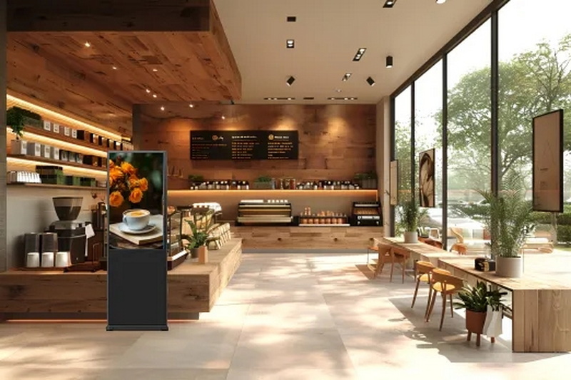 餐茶飲門店中,顯示屏可躍升為視覺(jué)焦點(diǎn),不僅有助于展現(xiàn)新品、促銷等信息,傳遞品牌文化,還能增強(qiáng)顧客互動(dòng)體驗(yàn)。通過(guò)沉穩(wěn)優(yōu)雅、機(jī)身纖薄的極彩系列S3立式廣告機(jī),不僅能夠提升大氣觀感,還能實(shí)時(shí)從云端便捷推送如品牌背景、產(chǎn)品促銷、新品上市等信息,實(shí)現(xiàn)門店信息智慧化、高清化、高亮化展示,進(jìn)一步聚焦消費(fèi)者目光。同時(shí),通過(guò)對(duì)各類信息的即時(shí)性展示,也能有效解決更新不及時(shí)、物料損耗大、持續(xù)性低、宣傳成本高等問(wèn)題。