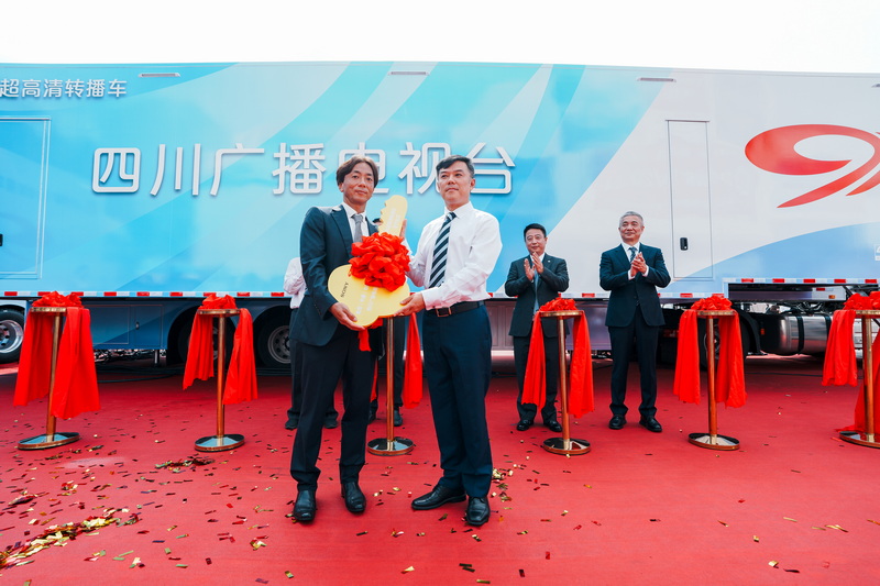 四川省廣播電視局黨組成員、總工程師李翔;四川廣播電視臺(tái)黨委委員、副總編輯朱廣皓;中國(guó)儀器進(jìn)出口集團(tuán)有限公司黨委委員 副總經(jīng)理剛勇、及中廣電設(shè)計(jì)院院長(zhǎng)李戈、索尼公司媒體解決方案事業(yè)部部長(zhǎng)村田雅和、索尼(中國(guó))電子系統(tǒng)本部總裁謝飚共同完成了剪彩儀式,為轉(zhuǎn)播車的正式交付揭開了序幕。
