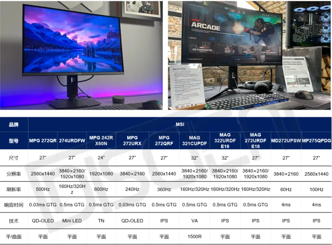 MSI(微星):MSI本次發(fā)布產(chǎn)品較多,電競/商用均有涉及。電競產(chǎn)品以雙模顯示為主,共有四款,尺寸分布也較為廣泛,除常規(guī)的27”/32”外,24”的雙模顯示器格外亮眼。而在商用部分,除常規(guī)的2K 100Hz顯示器外,同樣發(fā)布了一款搭載內(nèi)置系統(tǒng)的智能顯示器MD272UPSW,集成了一系列智能電視功能,例如 Google TV 和 Google Assistant。