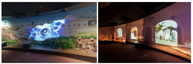 Design Habit設(shè)計(jì)總監(jiān)Bharat Upadhyay補(bǔ)充道:“我們不僅注重美學(xué)呈現(xiàn),更力求打造技術(shù)與敘事巧妙融合的觀展體驗(yàn)。我們運(yùn)用投影技術(shù),將抽象敘事轉(zhuǎn)化為生動(dòng)而富有感染力的場(chǎng)景,使參觀者能夠身臨其境地體會(huì)甘地的教誨與哲學(xué)思想!