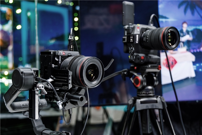 為滿足嚴苛的畫面要求,佳能“佳直播”部署了以佳能EOS C80和EOS C50組成的雙機位娛樂團播直播解決方案,主機位采用的是EOS C80搭配RF15-35mm F2.8 L IS USM,游機位采用的是EOS C50搭配RF14-35mm F4 L IS USM。