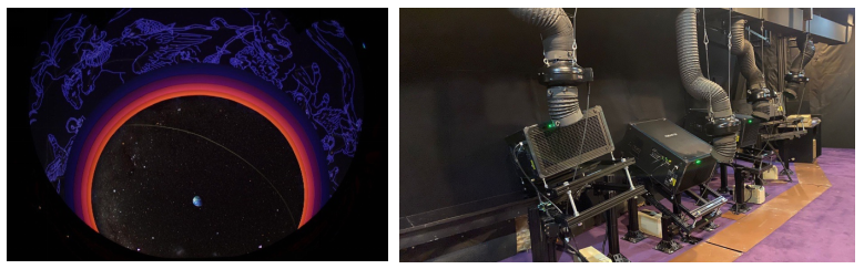 極具沉浸感的畫面(左)由科視 Christie Griffyn 4K35-RGB 投影機(jī)(右)以環(huán)形分布于穹幕周圍共同呈現(xiàn)