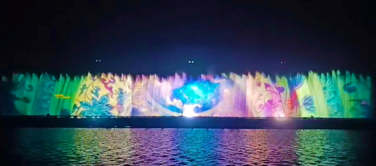 科視Christie Crimson WU32投影機打造出寬180米、高18米的壯麗水幕投影